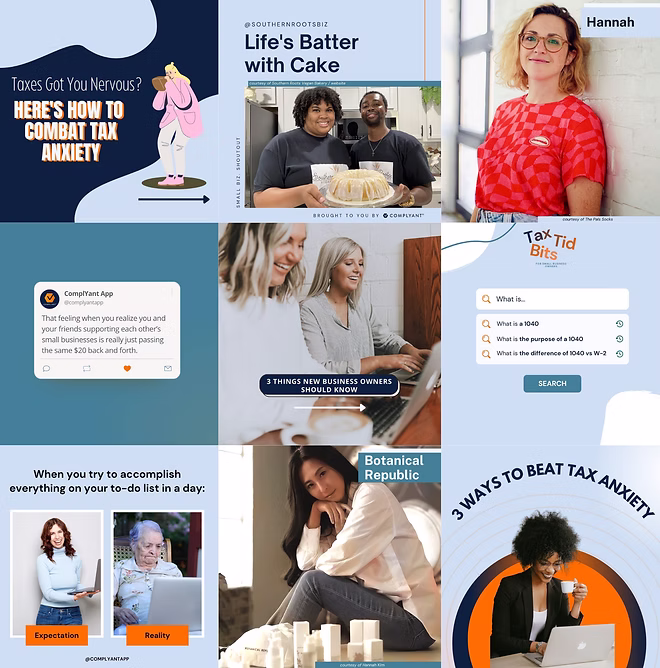 Comprehensive social media management and brand development for ComplYantApp, a tax platform aimed to support small businesses.