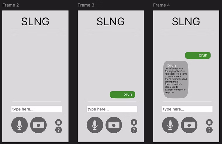 SLNG aims to bridge the gap between immigrant parents to America and their born-and-raised American children. This app was designed with ease of use in mind, allowing anyone of any age to use it without going through a lengthy learning process.